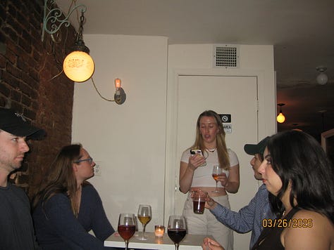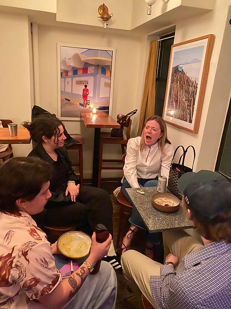 that being said, i think the first salon was a success! i was a little stressed, but i had so much fun and i think the fabulous and brave attendees did too. prima was a perfect venue, it was a breezy 70 degree spring night, and we had some great conversations about what happens when we gather in groups. i was afraid it would be too meta but it ended up being the perfect topic for the first one. and i’m planning to do it again at the end of april! if you were too chicken to come to the first one, you should grow up and get to Prima. topic TBD — suggestions welcome! and thank you again to the inaugural cohort ❤️ feedback from you all VERY welcome!